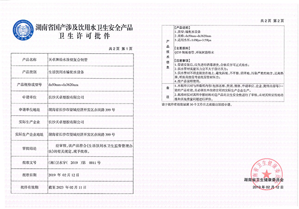 涂塑鋼管衛生許可批件