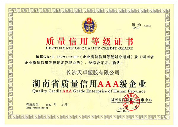 質量信用等級AAA證書