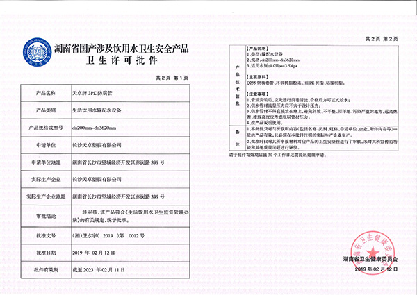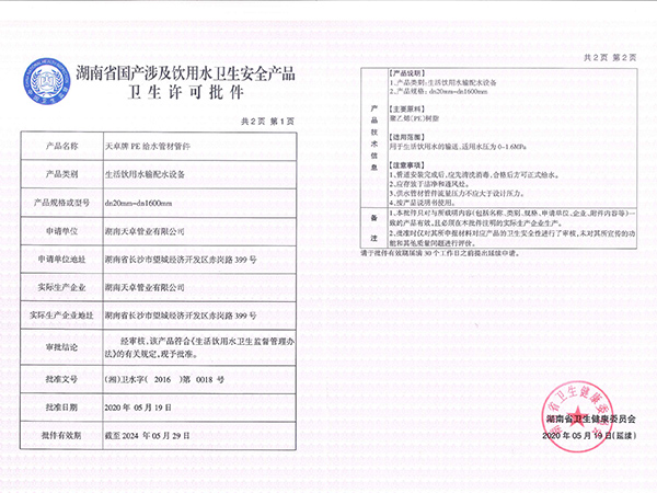 PE給水管衛生許可批件