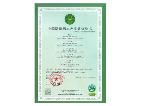 中國環境標志產品認證證書