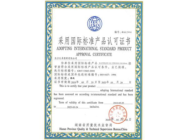 采用國際標準產品認可證書